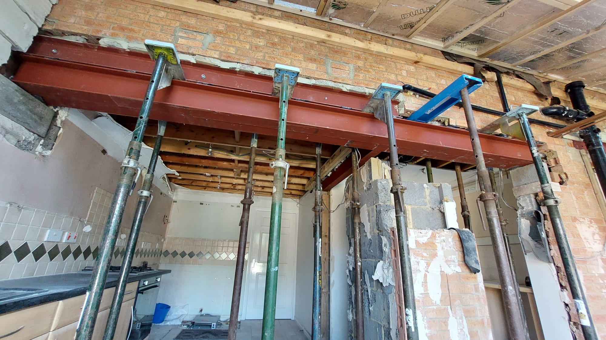 We were instructed by our client to design an extended steel beam to span over an existing central pier they wished to remove as part of their domestic single story extension project.